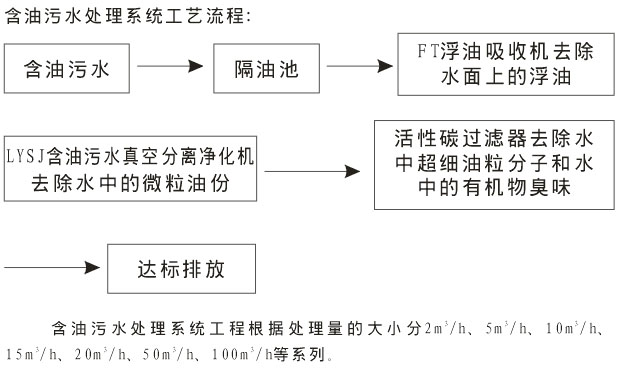含油污水凈化處理系統(tǒng)是我公司在吸收國內外先進油水分離技術和經驗,綜合利用FT型浮油吸收機、LYSJ型含油污水真空分離凈化機、活性碳過濾器等設備的過濾原理和使用環(huán)境的基礎上而形成的一套含油污水處理凈化、達標排放、回收利用的先進處理工藝流程,本系統(tǒng)適用于火力發(fā)電廠、煉油幫、儲油庫區(qū)含油污水的處理,使之處理后排放水達到國家GB8978綜合排放標準(水中含油量≤5mg/L,懸浮物≤30mg/L),同時收集的廢油回收利用。本系統(tǒng)工程具有占地面積小、操作維護方便、處理效果好、投資少等優(yōu)點,可以替代傳統(tǒng)的氣浮法工藝。